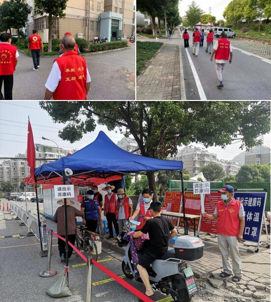 嚴(yán)守社區(qū)大門出入口的是棲霞山管委會和棲霞山園林管理處的退伍軍人黨員志愿者,他們一大早來到社區(qū),聽從社區(qū)安排,配合社區(qū)工作人員在社區(qū)出入口給來往人員測體溫、查看蘇康碼和做好外來人員登記,他們以軍人的作風(fēng)和擔(dān)當(dāng)挑起疫情防控工作的重?fù)?dān)。