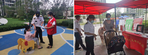 每天拿著小喇叭流動播放防疫知識的是攝山村新時代文明實踐服務(wù)隊的志愿者,他們由黨員群眾志愿者和小區(qū)物業(yè)人員組成。在疫情防控阻擊戰(zhàn)打響后,他們主動“請戰(zhàn)”,穿上志愿服務(wù)紅馬甲和藍(lán)馬甲,每天和社區(qū)干部一樣按時來報到,化身防疫宣傳員,深入到居民小區(qū)進(jìn)行密集的音頻宣傳,通過給居民“磨耳朵”,廣泛而深入地宣傳防疫知識,有溫情和善的勸導(dǎo),也有嚴(yán)厲批評的訓(xùn)誡,方式多樣接地氣。“希望通過小喇叭的反復(fù)播放,我們的居民能夠把防疫知識聽得進(jìn)、記得牢,在特殊時期,做好個人防護(hù)”,志愿者劉大媽說道。