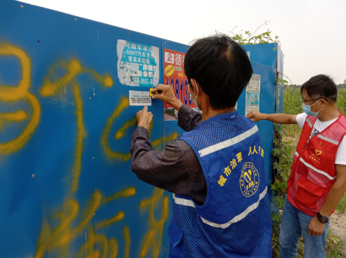 美化家園 你我同行 棲霞社區(qū)開展清理“牛皮癬”專項治理活動
