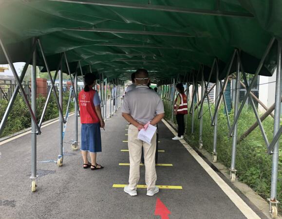 疫苗接種的信息一經(jīng)發(fā)布迅速引發(fā)轄區(qū)居民的踴躍報名。“請攜帶身份證,保持一米距離有序進行排隊”在新冠疫苗接種現(xiàn)場,居民群眾在志愿者的引導下按照流程完成信息登記、排隊等候、疫苗接種、留看觀察等環(huán)節(jié)。接種現(xiàn)場,一個個身穿紅馬甲的志愿服務的身影,讓本因疫苗接種忐忑不安的居民瞬間吃下一顆“定心丸”。