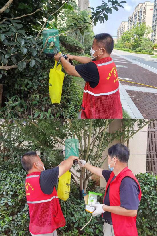隨著氣溫變化,蚊蠅有了更適合繁殖的環(huán)境,為疾病傳播帶來很大風(fēng)險。在石埠橋村社區(qū)殘疾人之家組織下,志愿者在小區(qū)內(nèi)各樹木上裝蒼蠅誘餌、誘捕蒼蠅。“秋天氣溫還比較高,但相對于夏天來說不那么熱,所以這個時候蒼蠅就很喜歡在外面飛來飛去,我們就要把蒼蠅除掉,避免它傳播細(xì)菌。”頂著高溫,經(jīng)過幾個小時的忙碌,志愿者終于在社區(qū)內(nèi)安裝完成了誘捕蒼蠅的籠子,為社區(qū)居民解決了一大困擾。