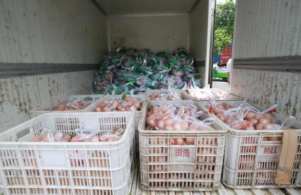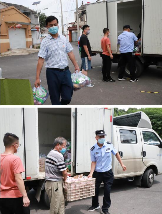 雞蛋、紫菜、水果、蔬菜......隨著一輛裝滿生活物資的大客車駛?cè)氪鍍?nèi),打開(kāi)車門,一份份分裝好的雞蛋和生活食材就映入眼簾。村工作人員、社區(qū)民警齊心協(xié)力將物資搬運(yùn)下車并根據(jù)居家人員名單將物資有序分好。隨后,村工作人員和社區(qū)民警劃好“責(zé)任田”,一個(gè)個(gè)或是用竹籃,或是用塑料桶將物資送達(dá)轄區(qū)155戶村民的家中。