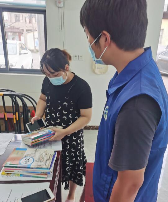 然后,隨著暑期進(jìn)入尾聲,疫情得到控制,學(xué)校也將如期開(kāi)學(xué)。錢(qián)家村內(nèi)有7名學(xué)子尚處于居家健康監(jiān)測(cè)的階段,不方便返校領(lǐng)取課本。為此,網(wǎng)格員主動(dòng)提出幫助學(xué)子們前去學(xué)校領(lǐng)取開(kāi)學(xué)書(shū)籍。在學(xué)校內(nèi),網(wǎng)格員根據(jù)學(xué)子的年級(jí),找到相應(yīng)的負(fù)責(zé)老師一一將他們本學(xué)期所需書(shū)籍領(lǐng)取到位。語(yǔ)文、數(shù)學(xué)、英語(yǔ)......一本本課本是學(xué)子們未來(lái)一學(xué)年披荊斬棘,駛向遠(yuǎn)方的動(dòng)力。隨著課本領(lǐng)取完畢,網(wǎng)格員們又分頭行動(dòng),將書(shū)本送至學(xué)子們的家中。