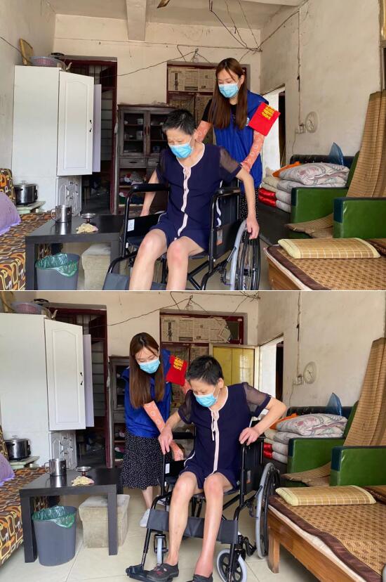 在開展全員核酸檢測(cè)摸排工作時(shí),社區(qū)網(wǎng)格員上門為轄區(qū)內(nèi)的低保戶進(jìn)行上門采樣,發(fā)現(xiàn)這位低保戶因?yàn)橥纫馔馐軅钦郏y以下地行走。了解到這一情況后,社區(qū)網(wǎng)格員便及時(shí)匯報(bào)情況,為低保戶送來了輪椅。細(xì)心的網(wǎng)格員李熹本還耐心地教她如何使用,為其調(diào)節(jié)到舒適的高度,同時(shí)鼓勵(lì)她要積極樂觀的生活,努力克服困難。“感謝你們一直惦記著我,我們算是遇上了好時(shí)代。”低保戶激動(dòng)地說道。