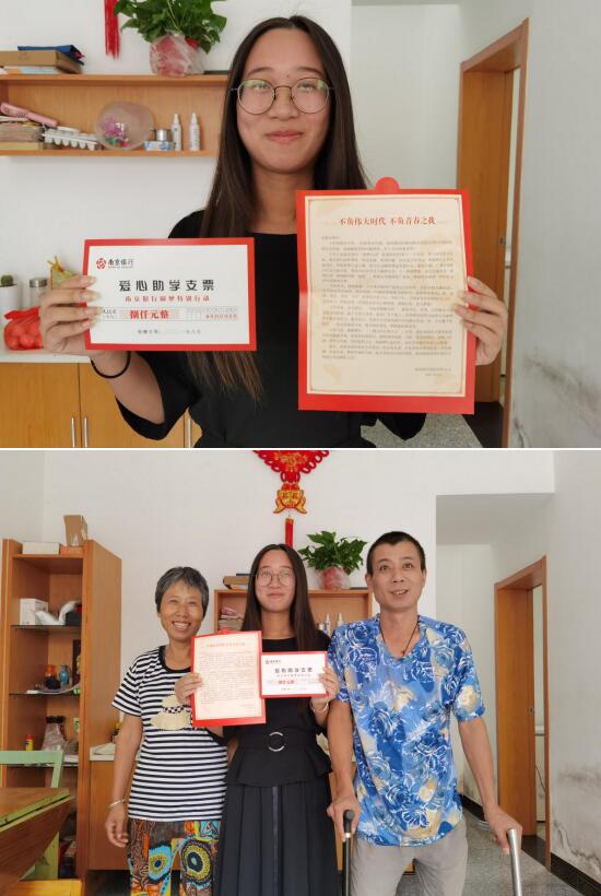 近日,南京銀行股份有限公司將“圓夢行動”帶到了南京市江寧區(qū)淳化街道青龍社區(qū),在這里,他們資助了一位殘疾家庭的困難學(xué)子——程雨,為她的大學(xué)旅程保駕護(hù)航。